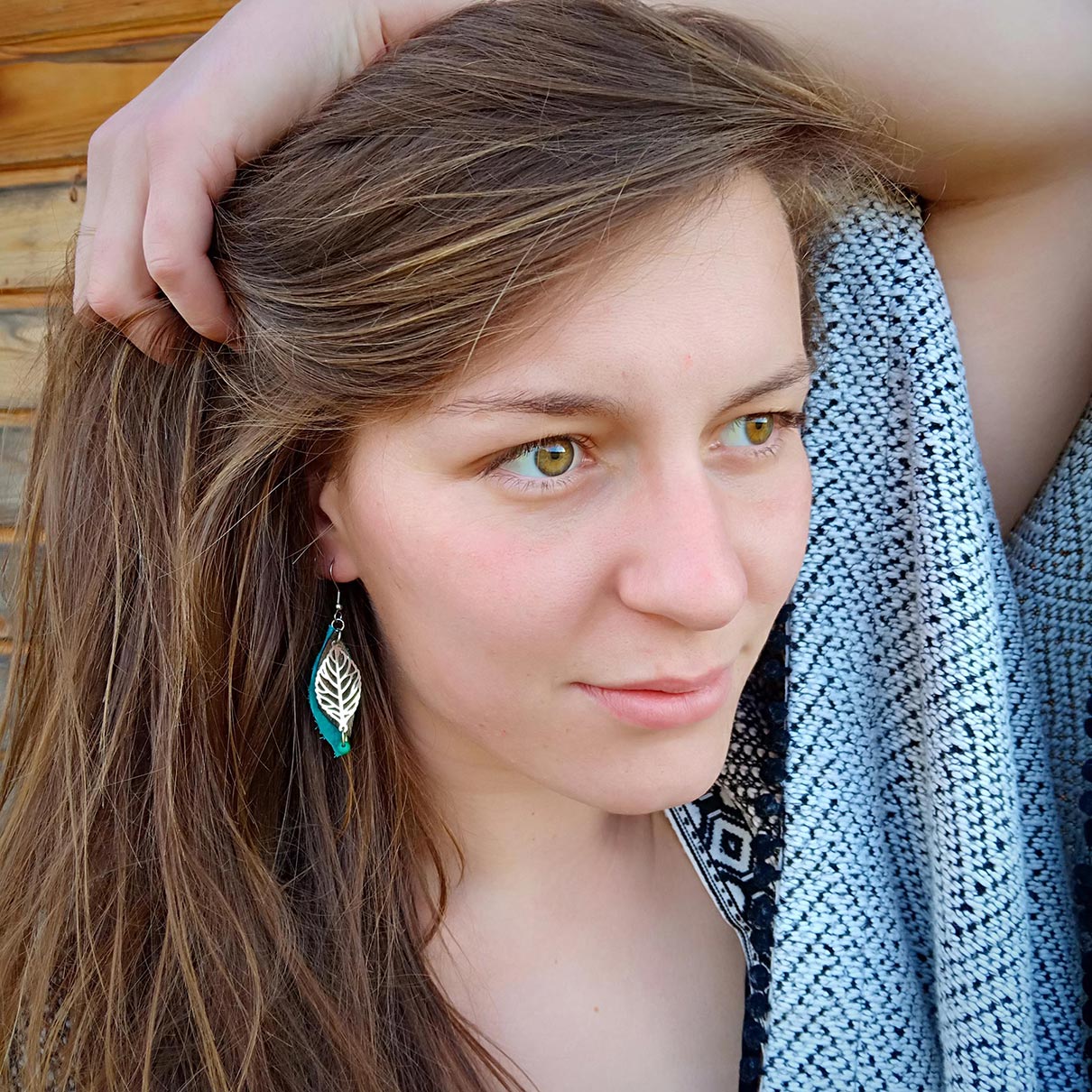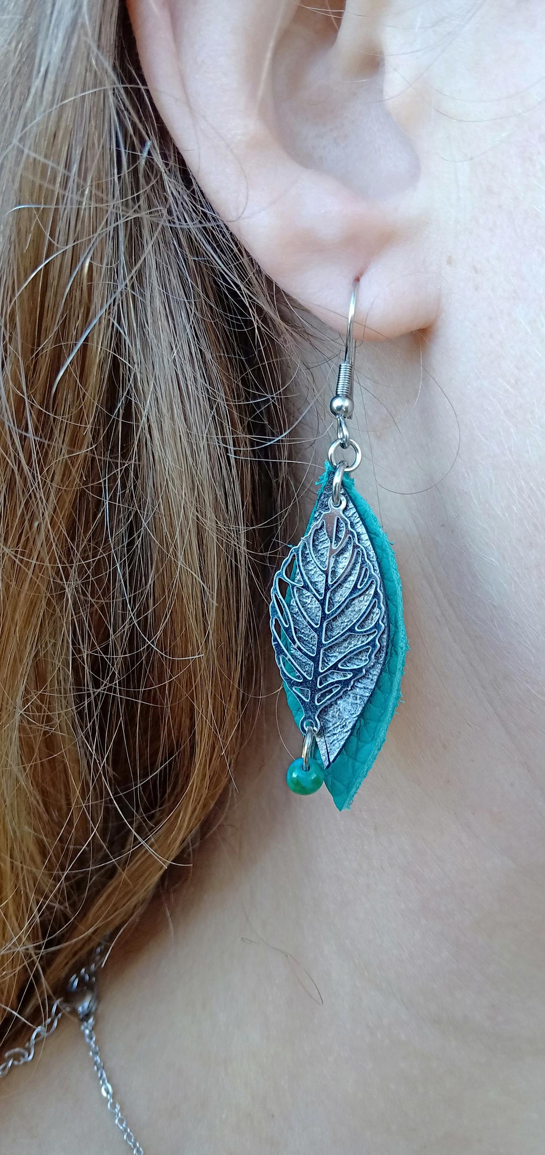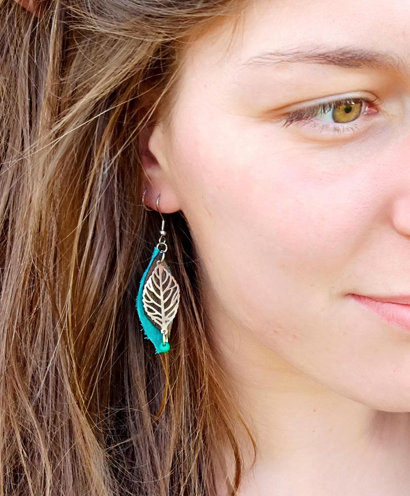 Boucles d'oreilles Feuille bleue