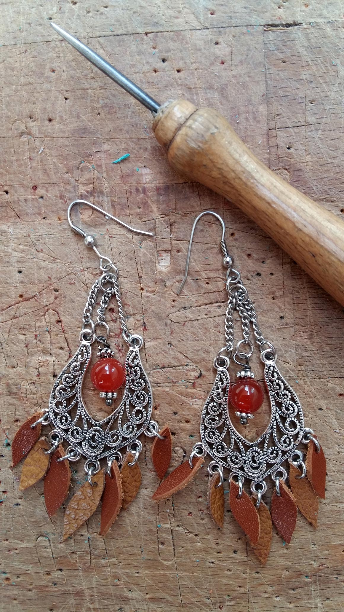 Chaque bijou est fabriqué à la main dans mon atelier, ou sur la route entre mes marchés.