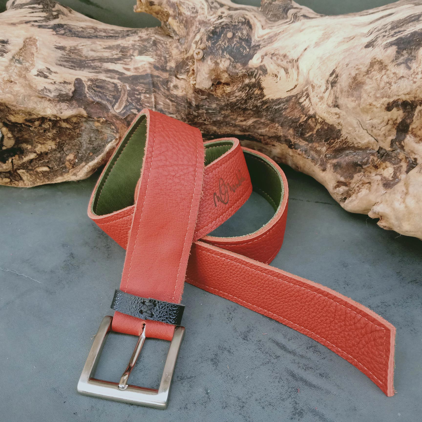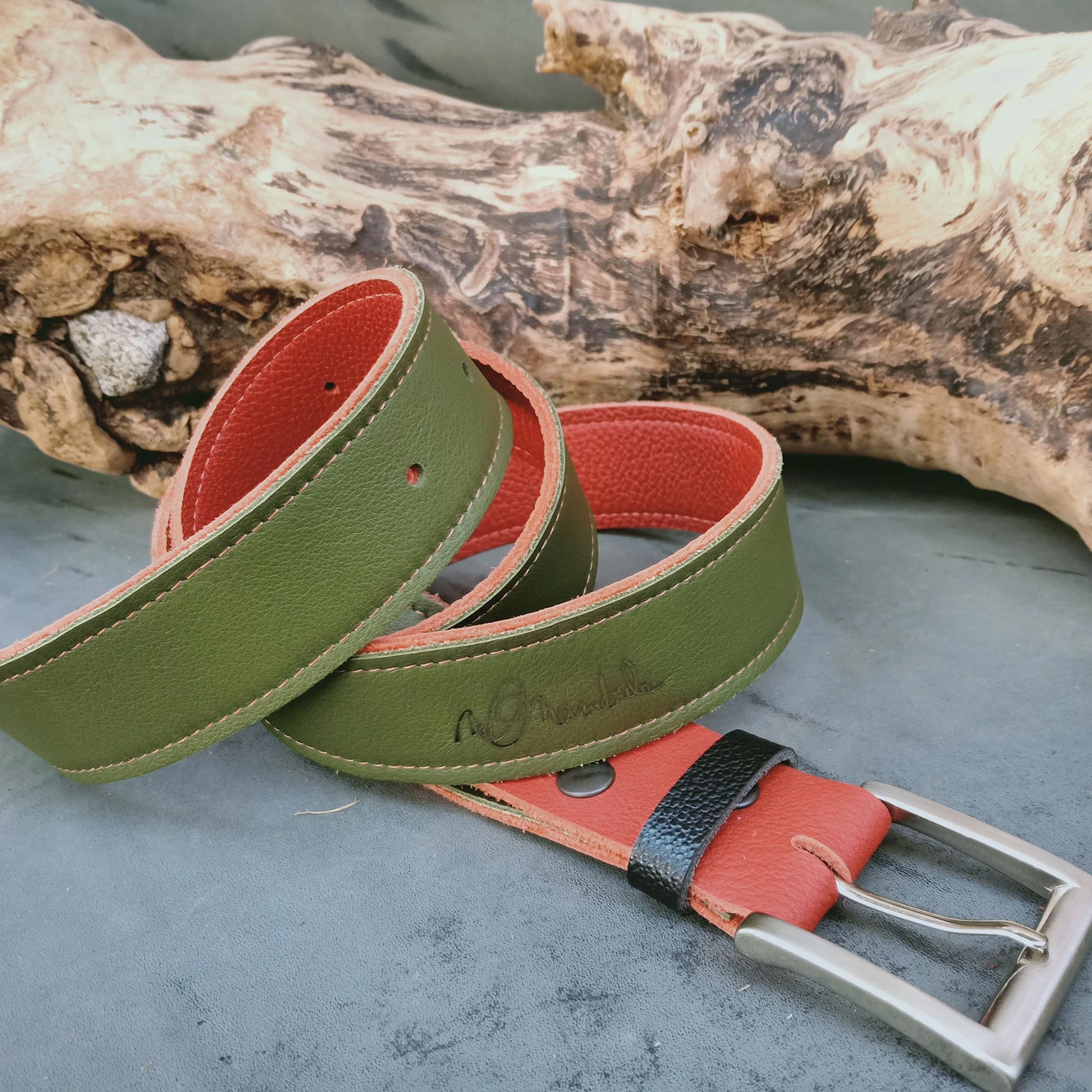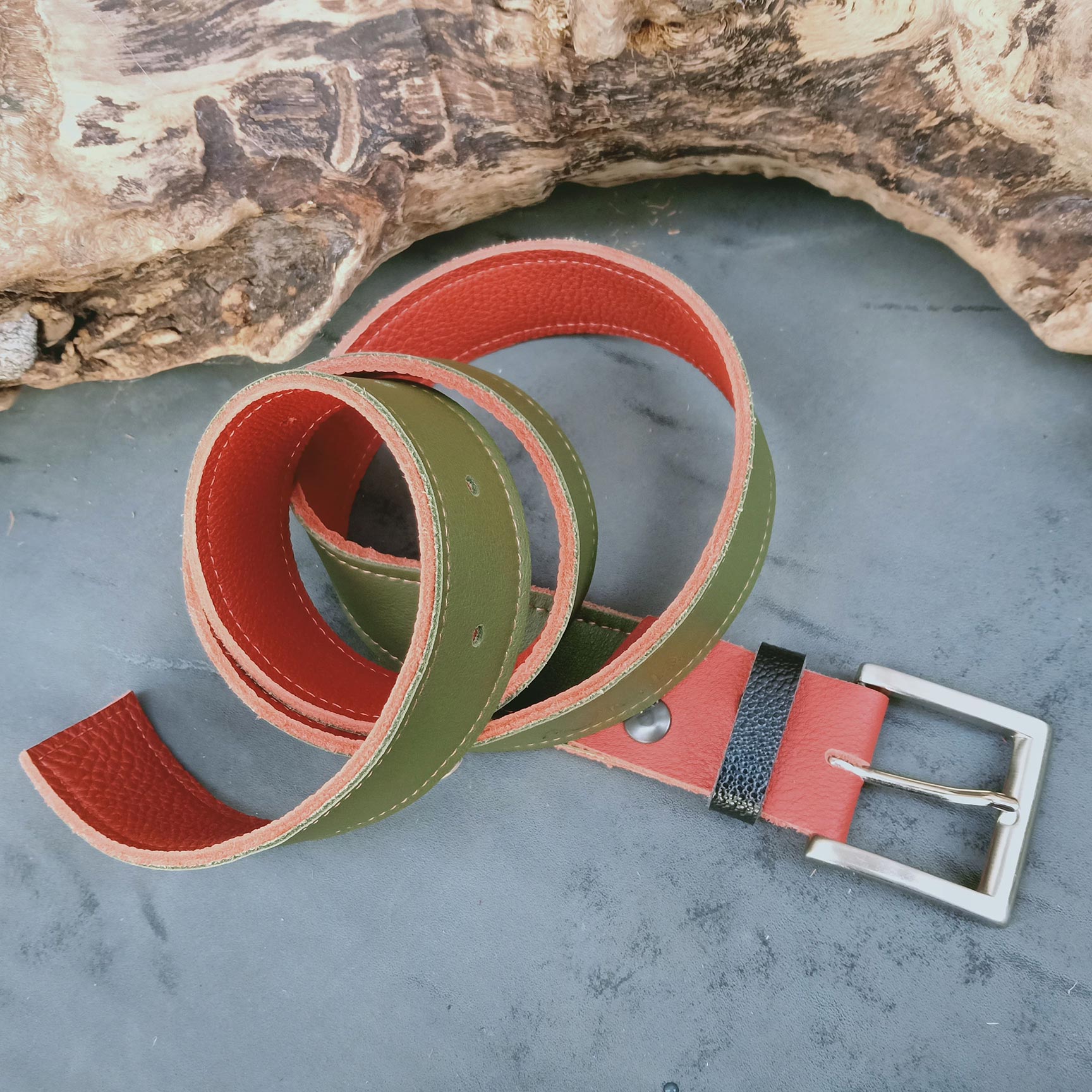 Ceinture réversible Kaki/rouille