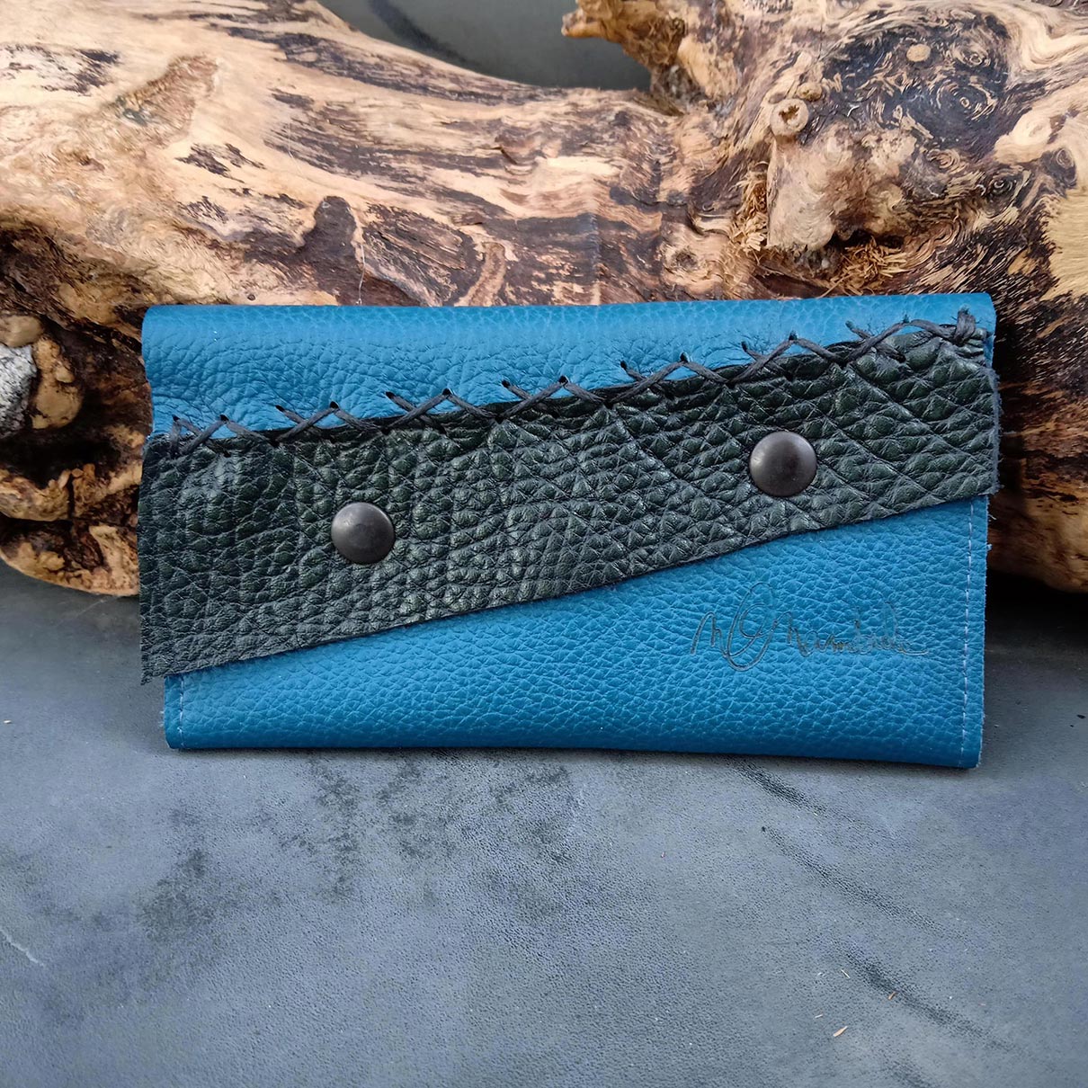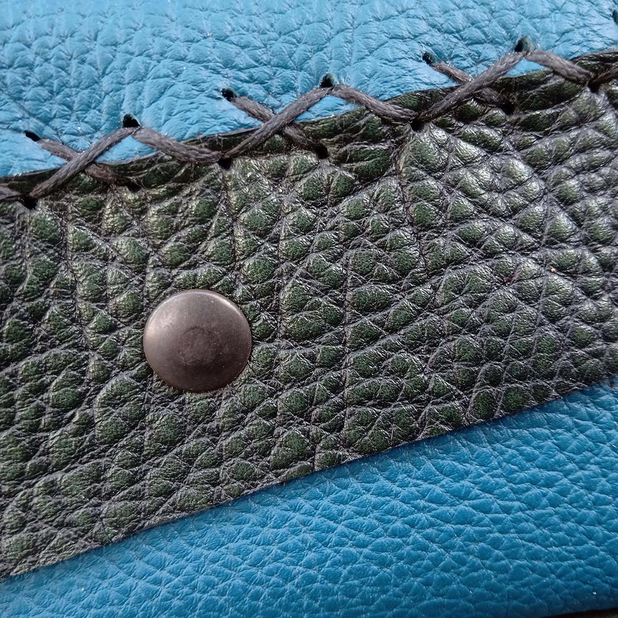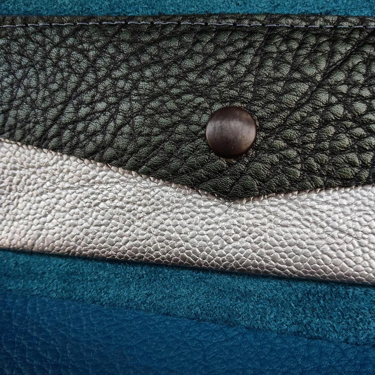 Couleurs des cuirs extérieurs: bleu et vert irisé.