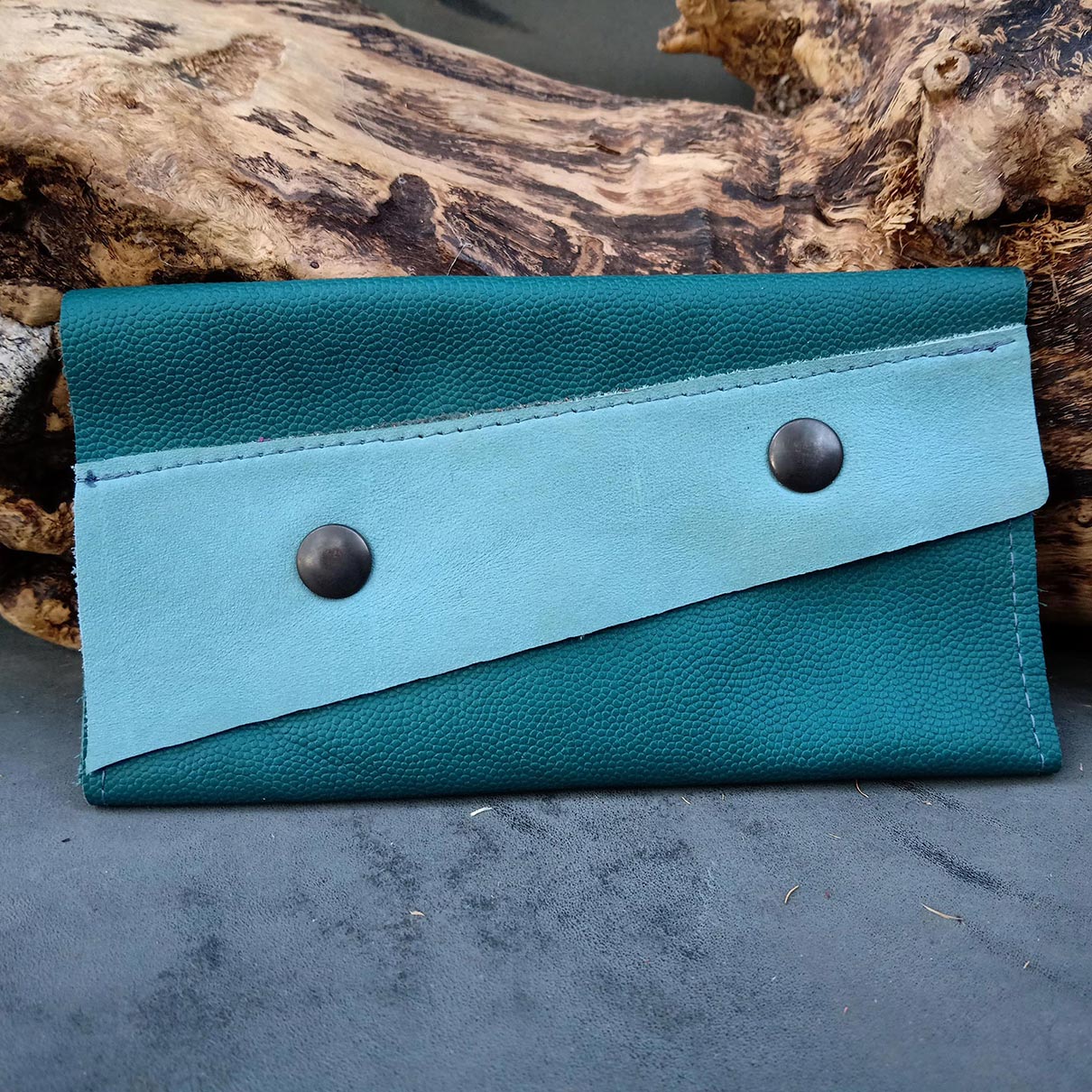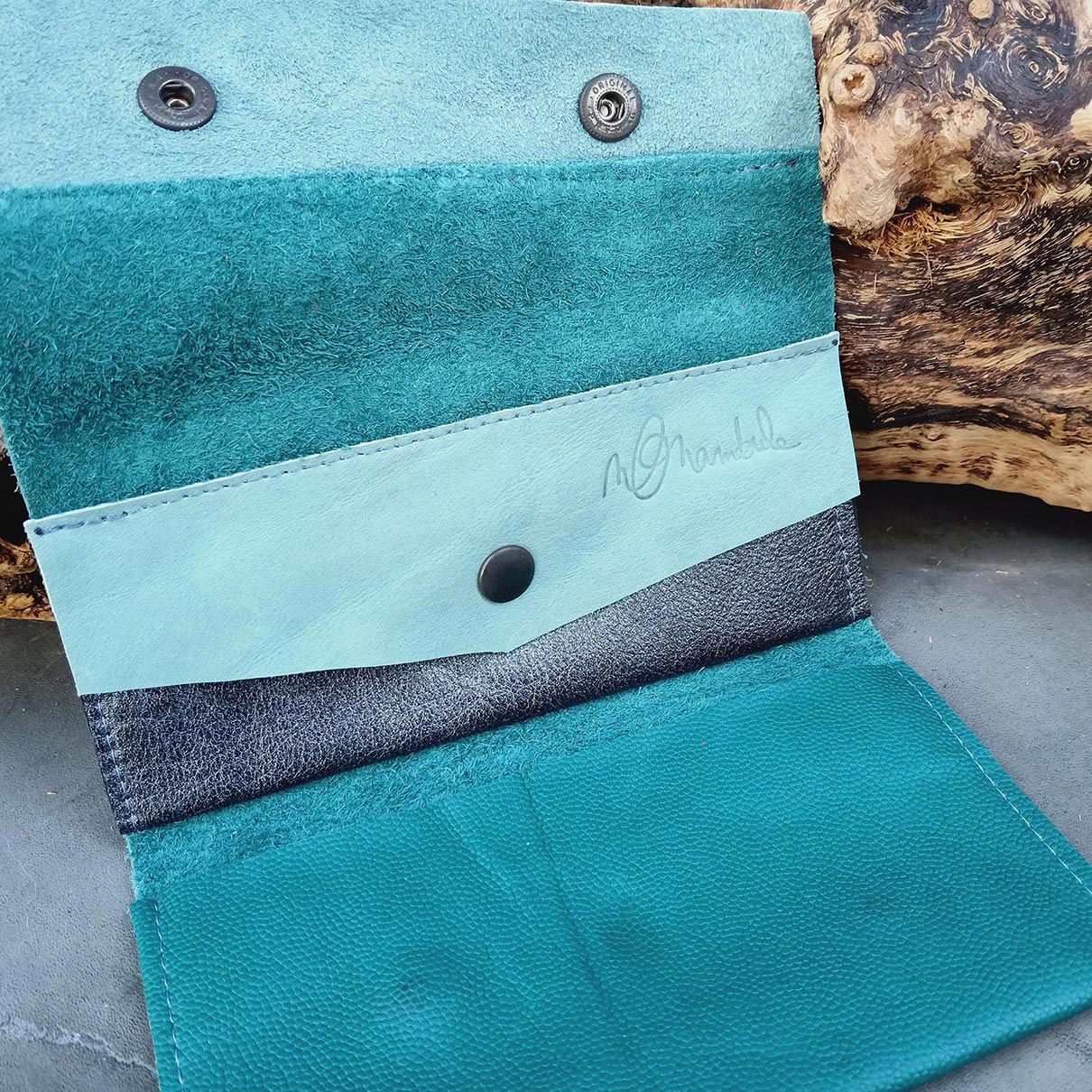 Couleurs des cuirs extérieurs: bleu canard et bleu clair.