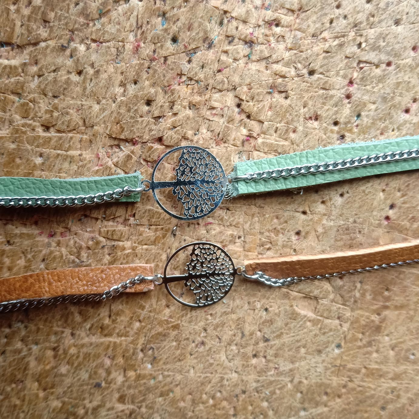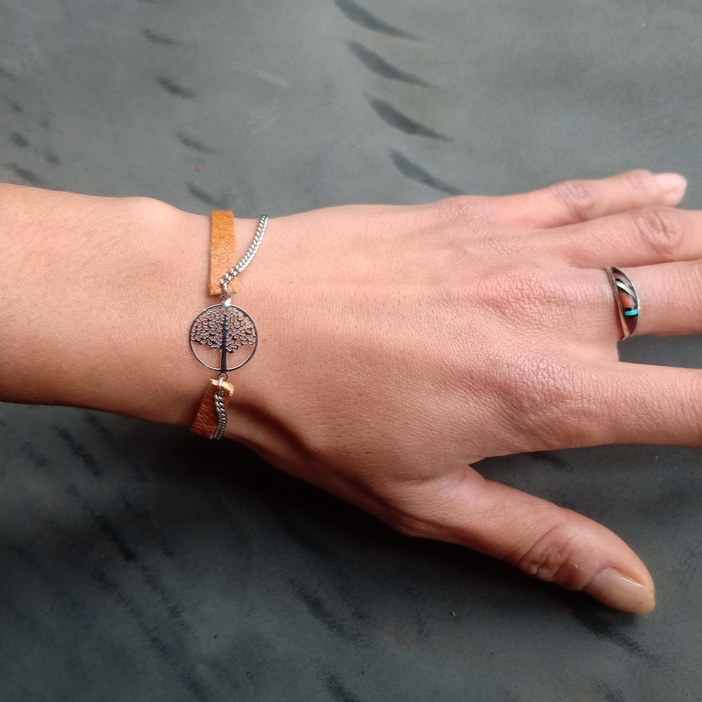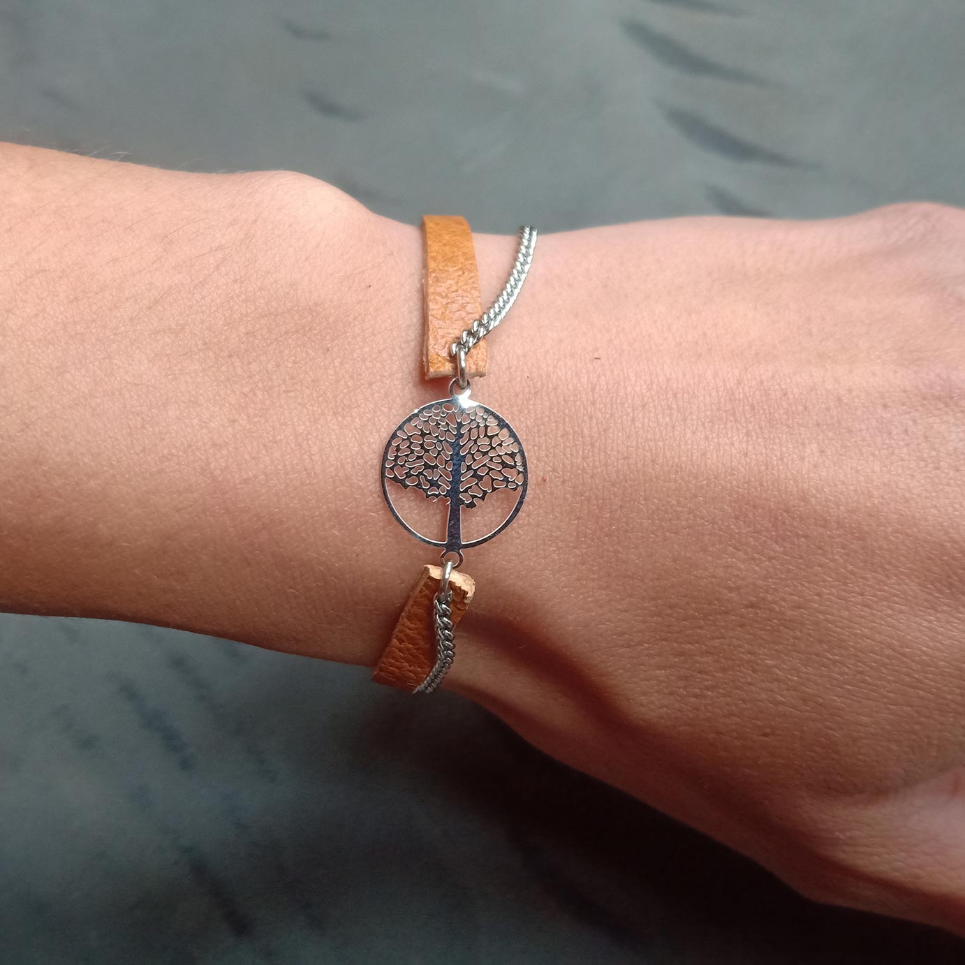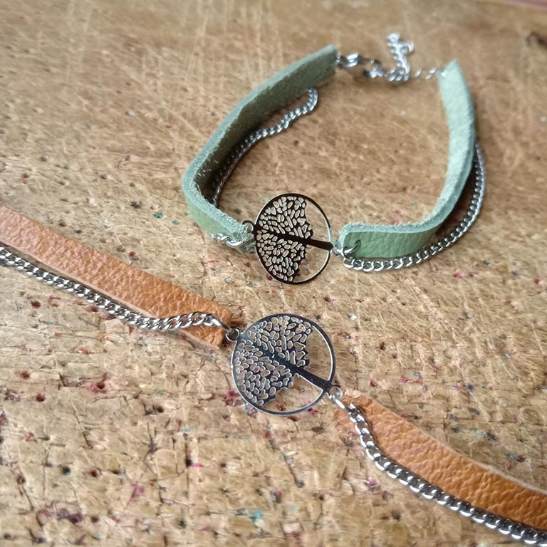 Bracelet arbre de vie NONAMBULE en cuir et chaine.