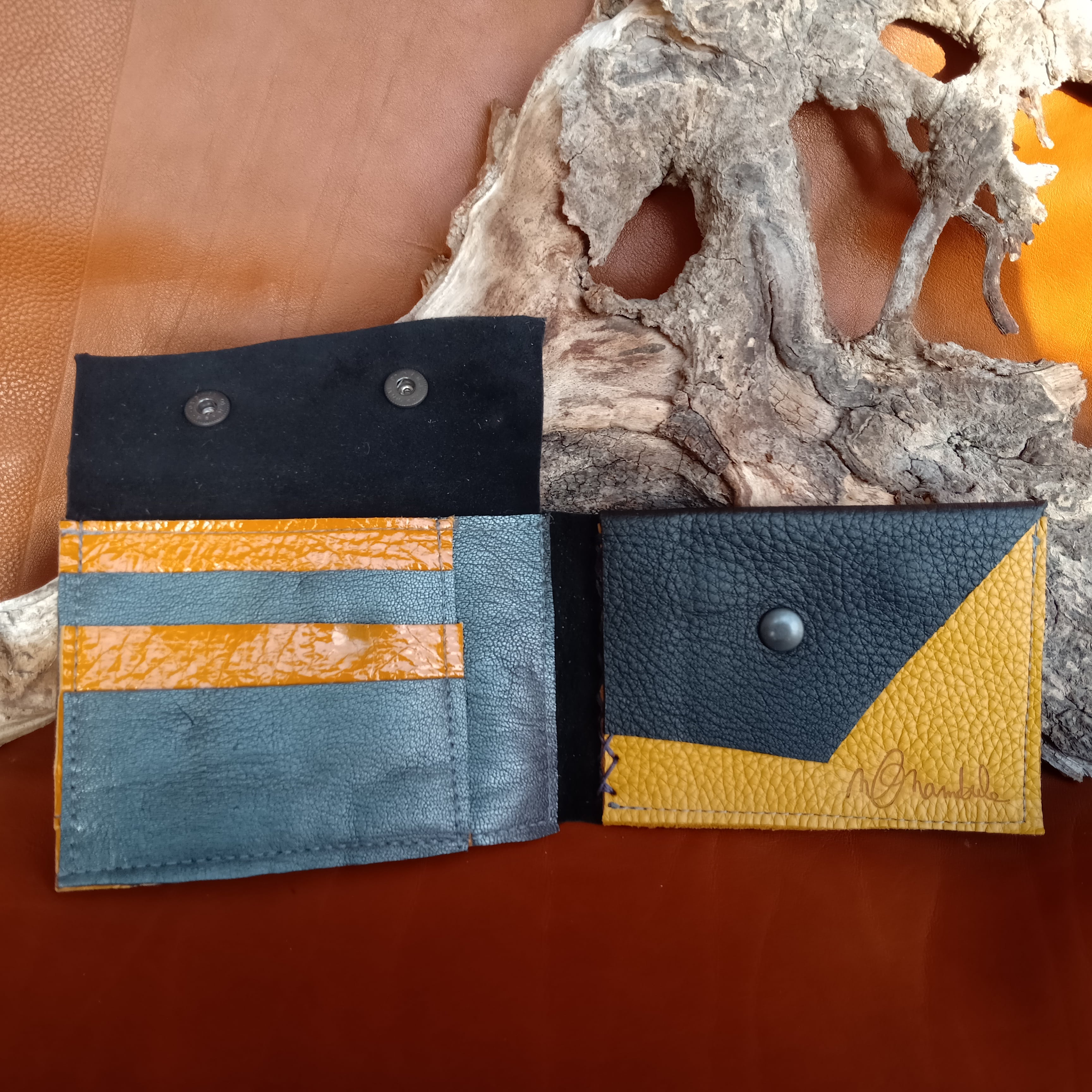 Portefeuille Noir/Jaune/violet irisé