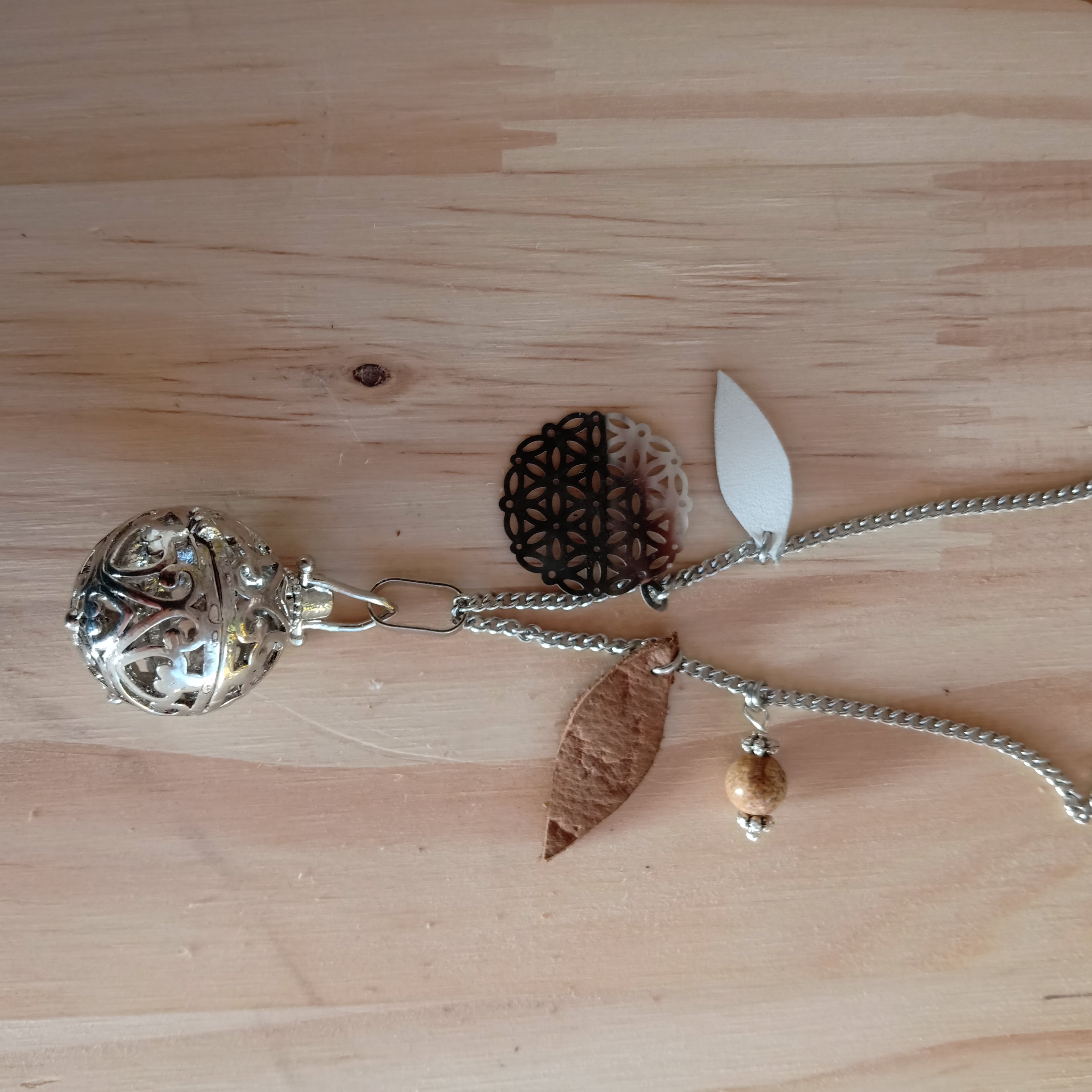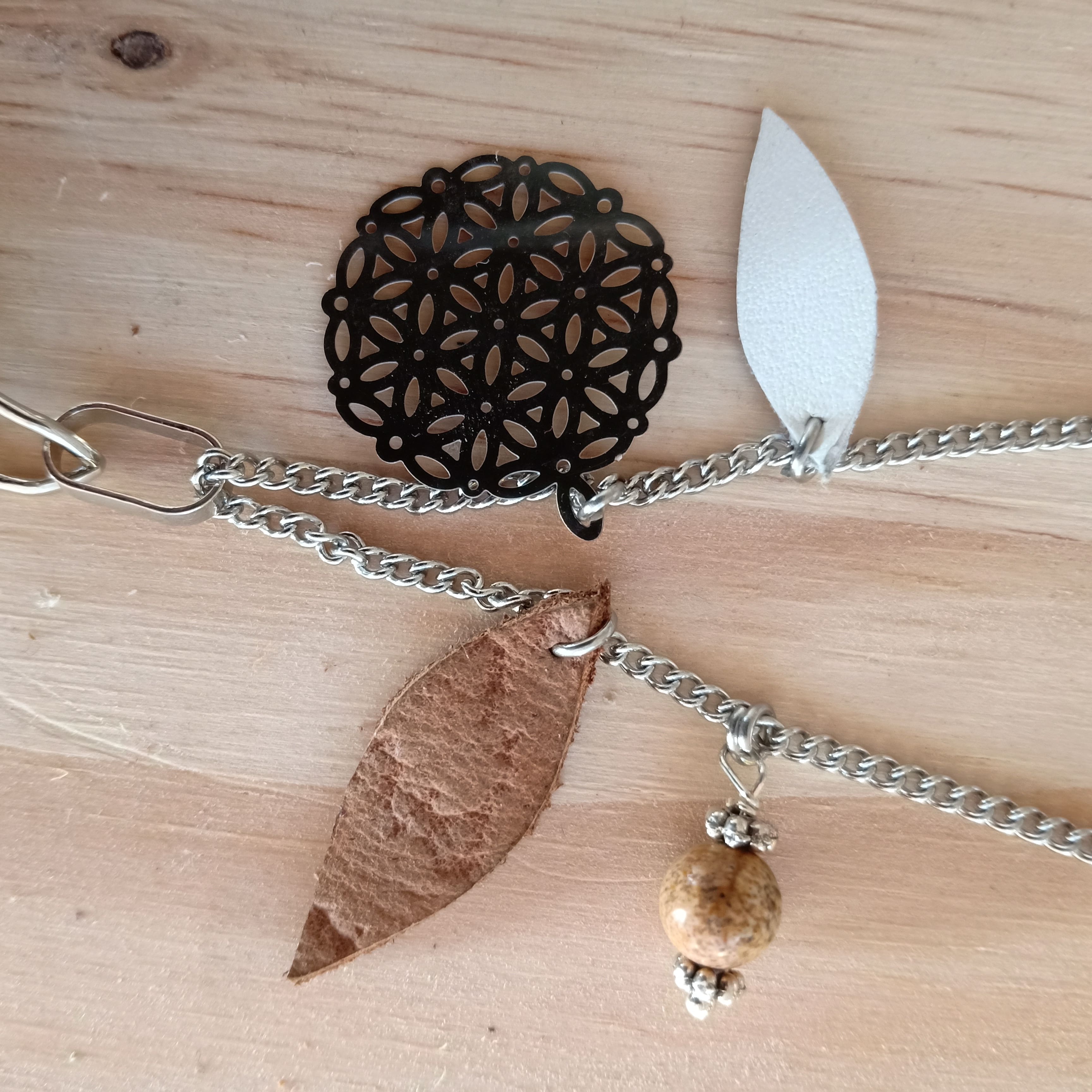 Chaine et fleur de vie en acier inoxydable.