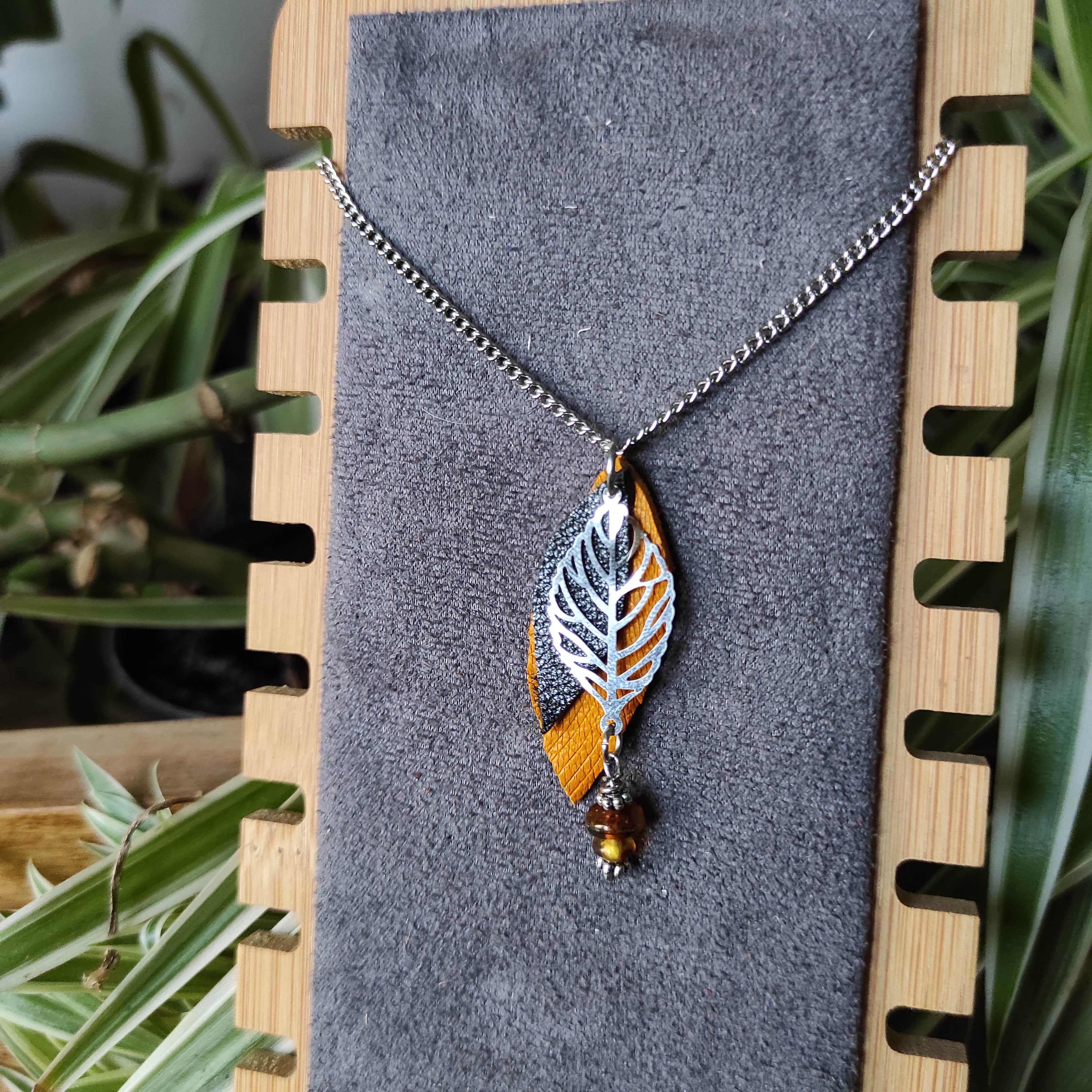 Collier Feuille Ambre